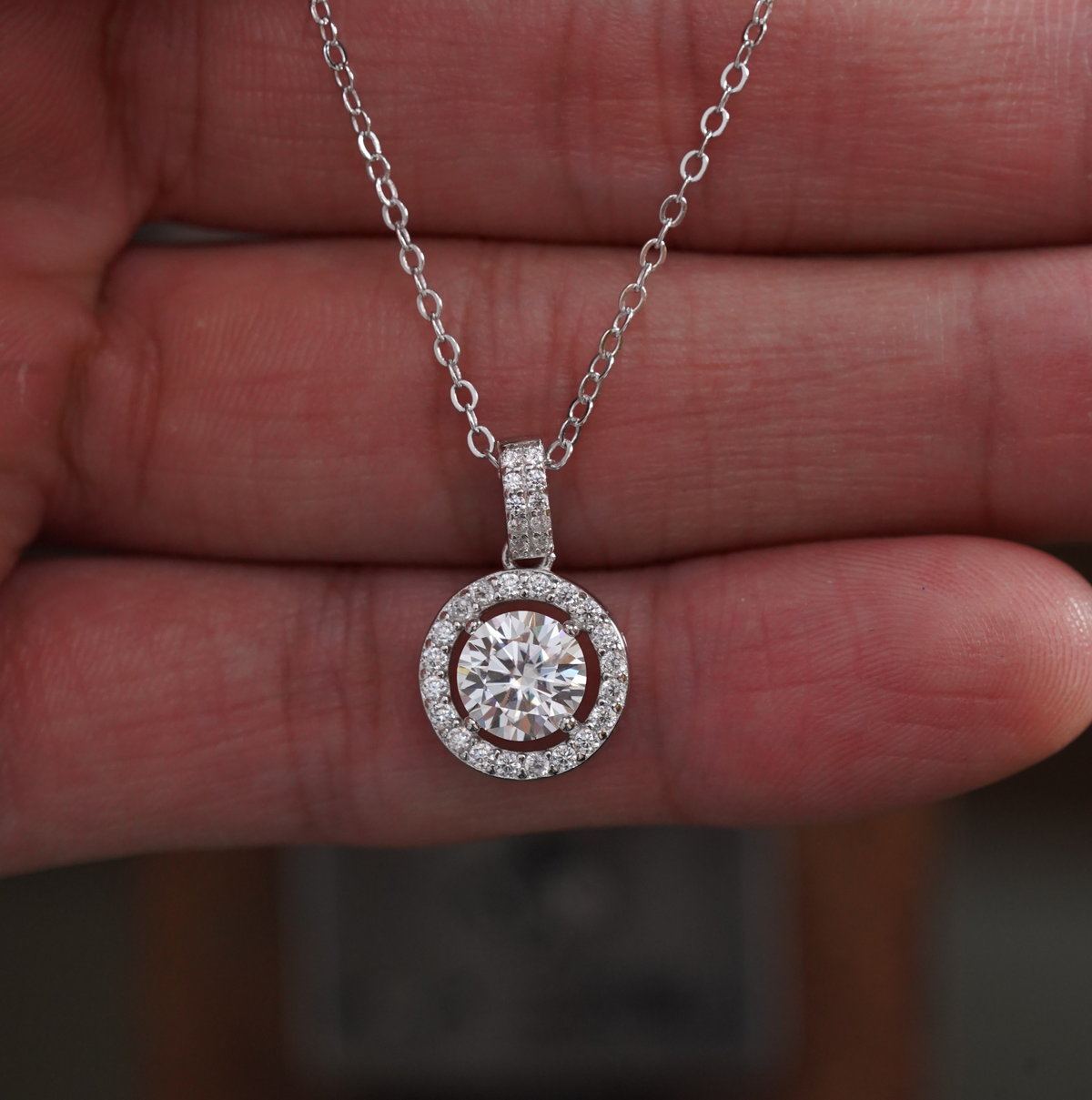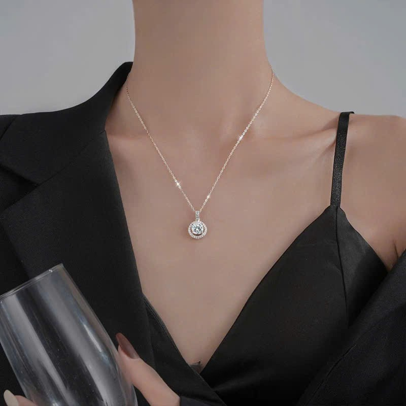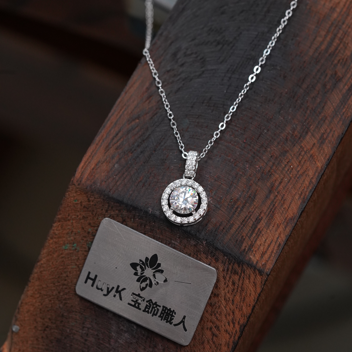 S925シルバーにモアサナイトをあしらったネックレスは、静かな美しさと永く寄り添う価値を大切にした一品です。中央に配された6.5mmのモアサナイトは、透明感あふれる輝きを放ち、信念や希望、内に秘めた強さを象徴しています。熟練の職人による丁寧な研磨と、変色を防ぐコーティングにより、シルバー本来の上品な輝きを長く保ちます。無駄を削ぎ落としたラウンドデザインは、首元や鎖骨を美しく引き立て、日常から特別な日まで自然に寄り添います。主張しすぎず、それでいて心に残る――大切な瞬間をそっと彩るネックレスです。