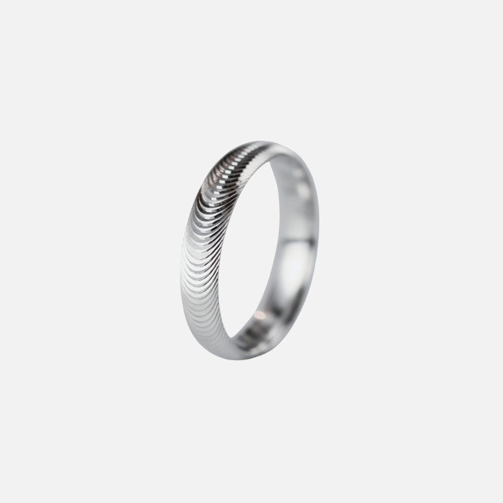 宝石も鮮やかな色も必要ない——S925シルルバーの表面に施された巧みなカットが、やさしく揺らめく光の効果を生み出しー 幅5ミリ- N300999