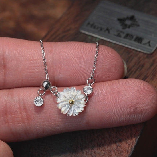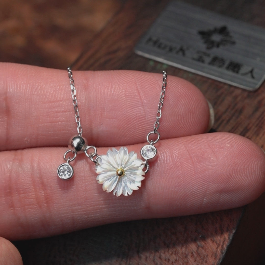 **デイジー(ひなぎく)**の花をモチーフにした、可愛らしくも上品なデザインのシルバーネックレスです。