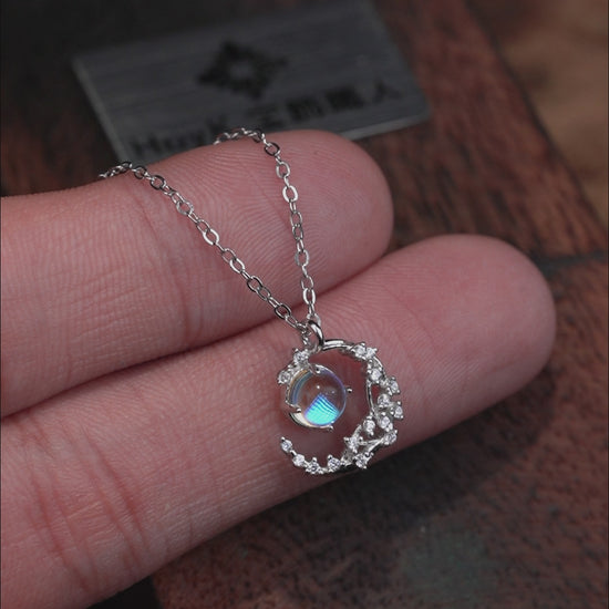 月の形をモチーフにした、神秘的で優雅なデザインのシルバーネックレスです。