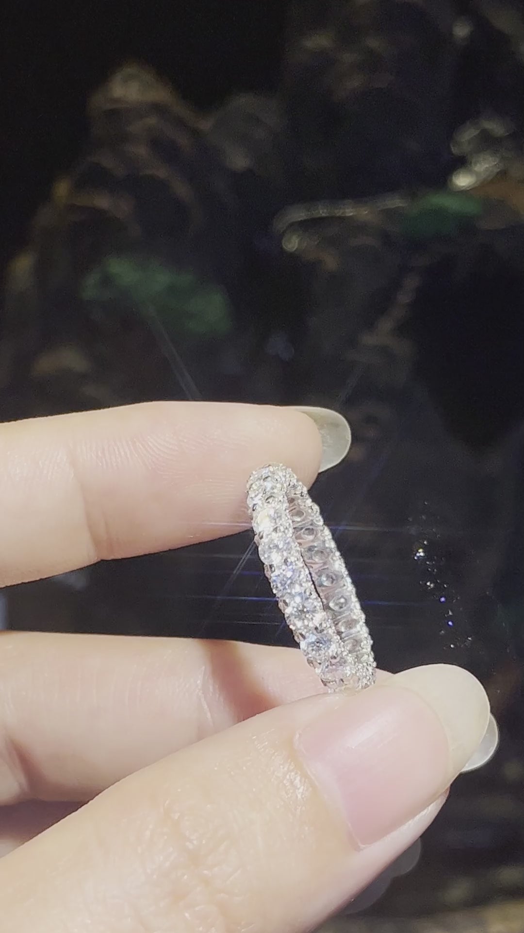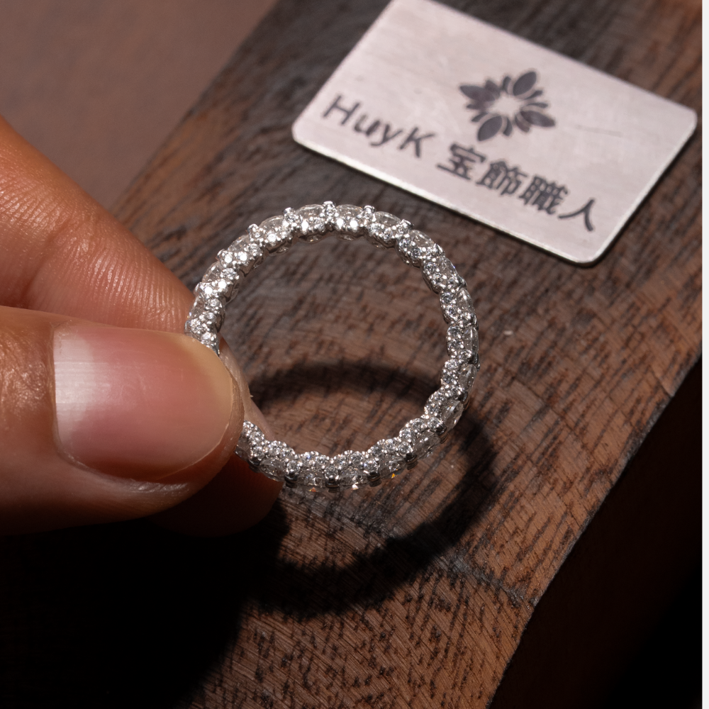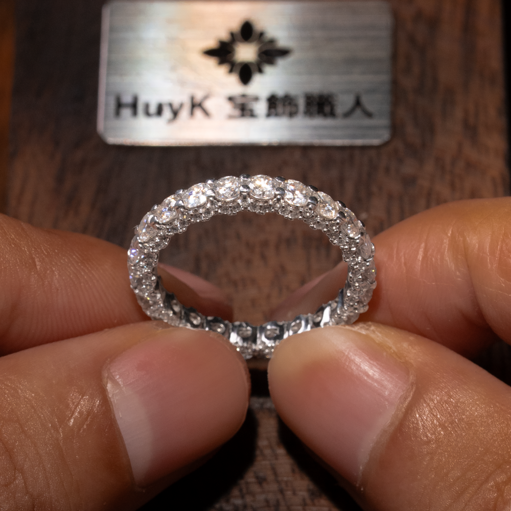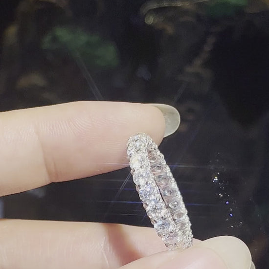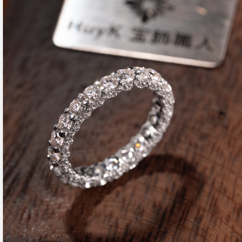 リング全体にきらめく高品質モアサナイトを、贅沢かつ精密にセッティングしました。まるで本物のダイヤモンドのような強い輝きと透明感を放ち、手元を華やかに彩ります。ベースにはS925シルバーを採用し、優れた耐久性と上品な光沢を実現。日常使いにも特別な日にもふさわしい、洗練された一本です。