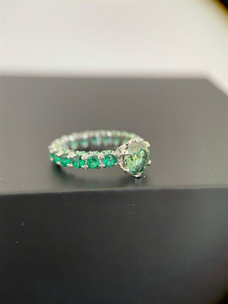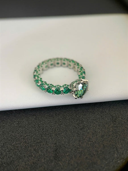鮮やかで洗練された輝きを放つレディースリング。高品質S925シルバーを使用し、リング全体にグリーンCZをセッティング。中央の8mm主石が指元に華やかさを添えます。で心地よい装着感を実現。