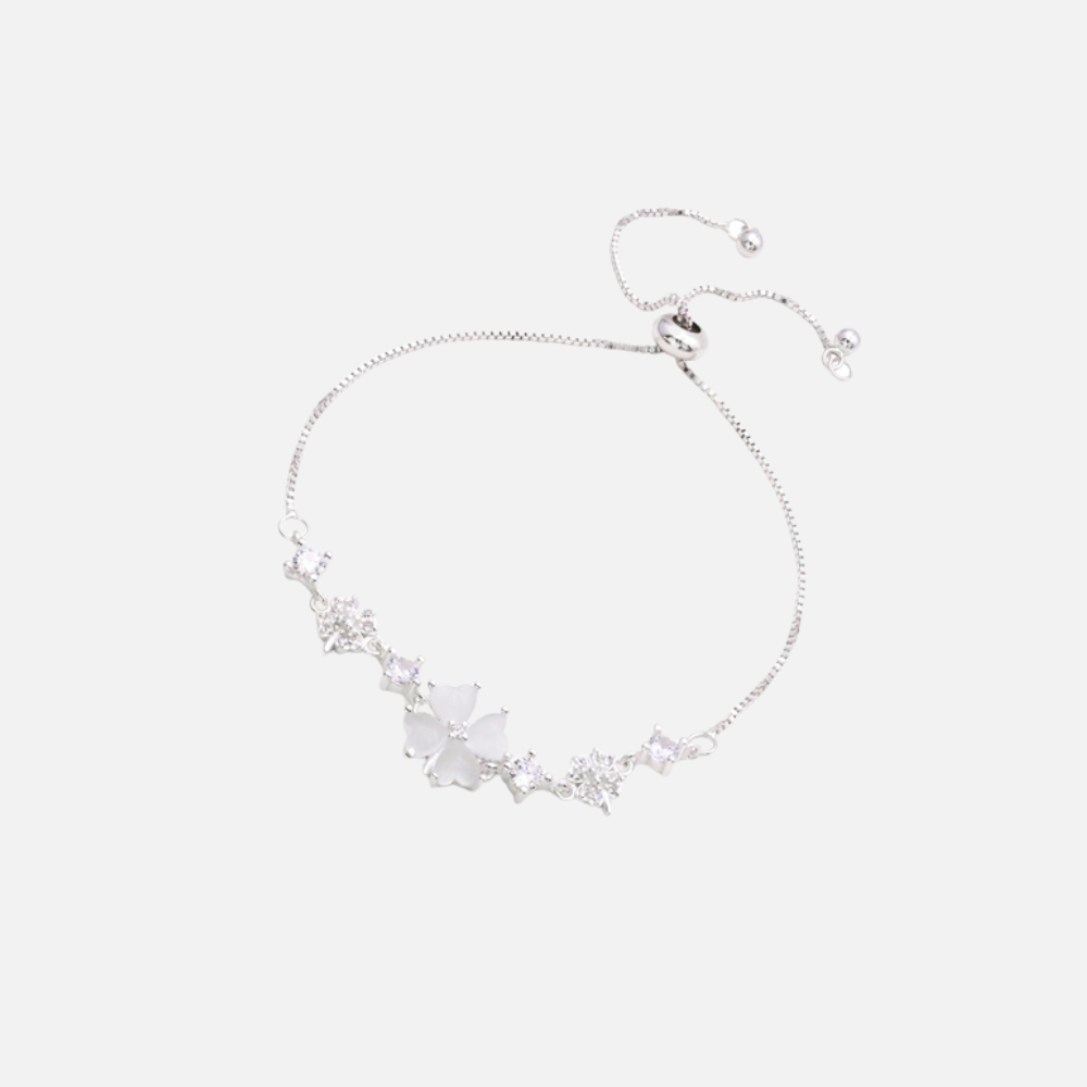 幸運の四つ葉のクローバー付き女性用シルバーブレスレットの数量を減らす