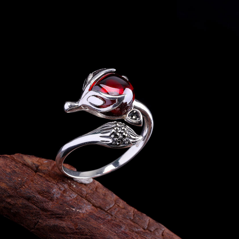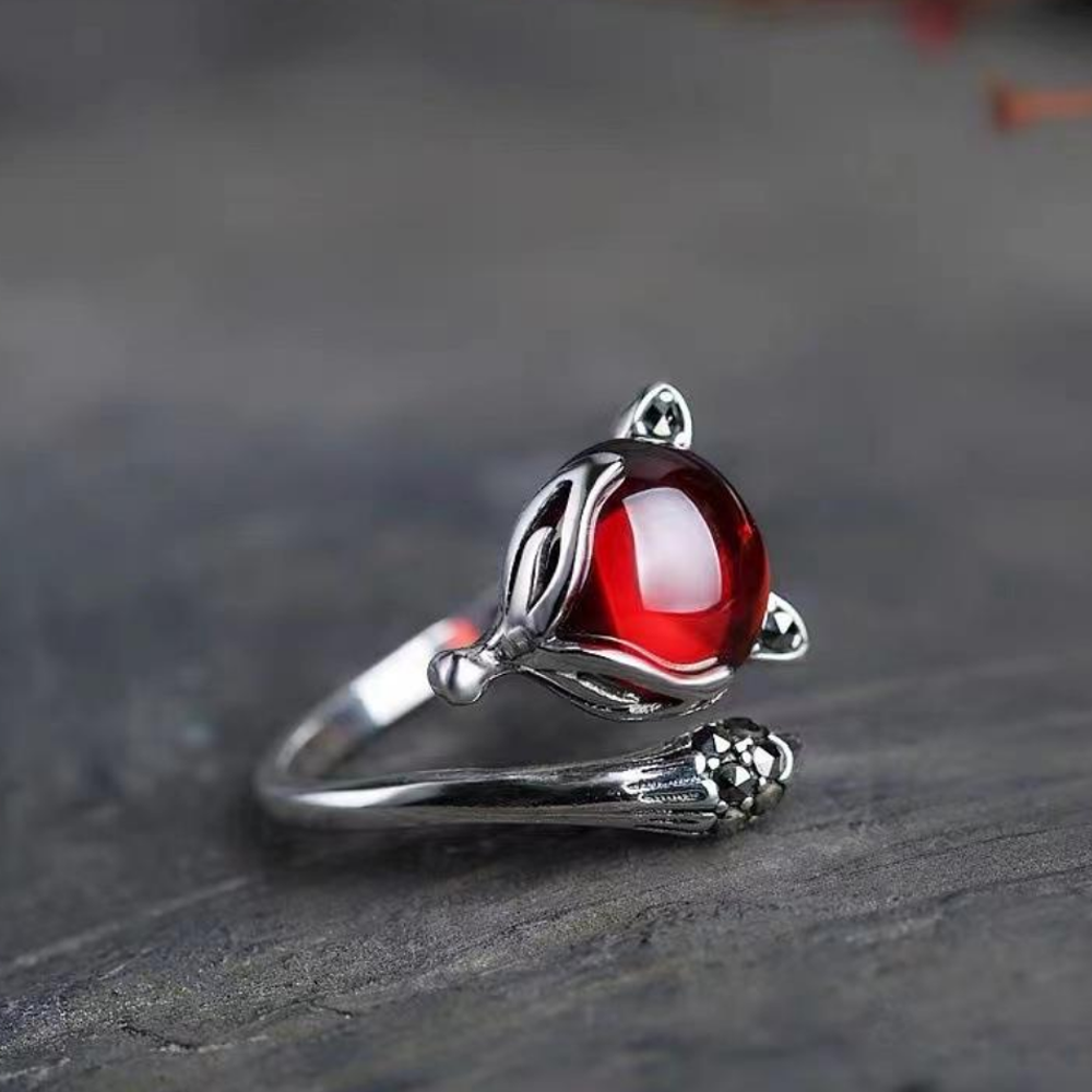 狐(きつね)をモチーフにした、神秘的で力強いデザインのシルバーリングです。